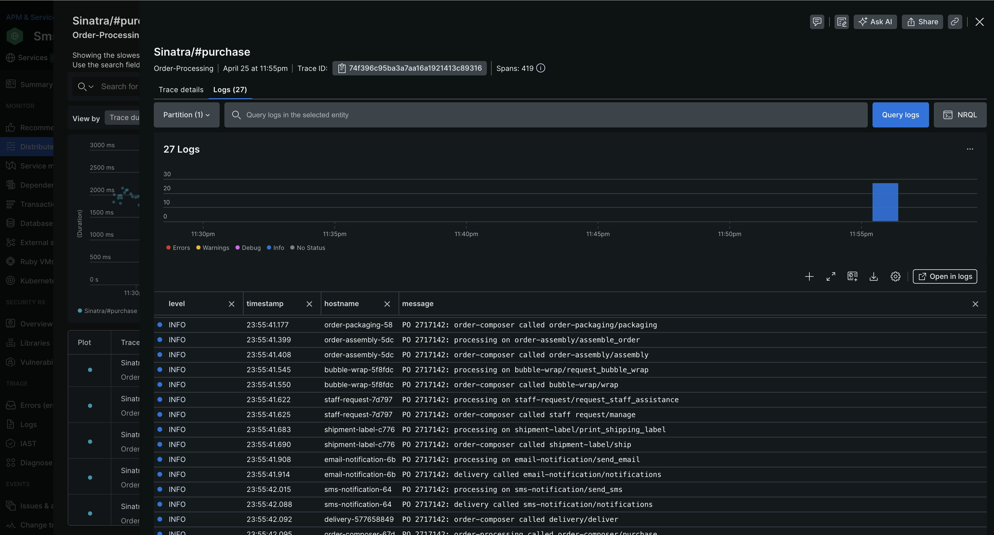 Para solucionar problemas de latencia de esta manera, debe poder ver el logs en el contexto. Luego, para comprender mejor cómo funcionaban sus sistemas cuando el rendimiento disminuyó notablemente: